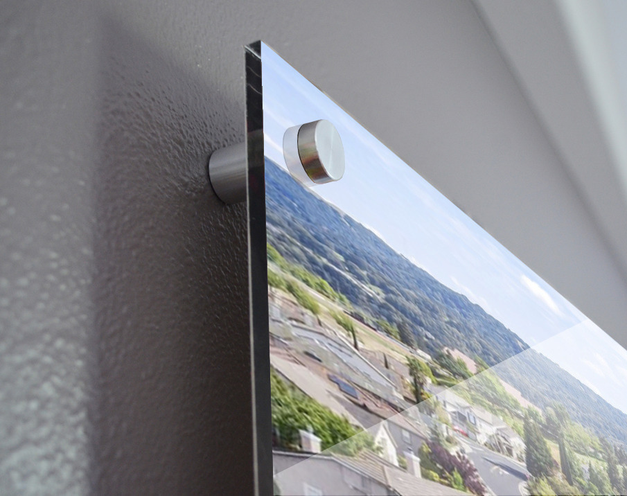 Printed to the edge - Ready to hang - provided with 4 premium polished aluminum stand off ( wall screws and mounting hardware provided )